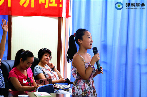 2014年7月19日,首期建融基金“少兒財商”公益講堂活動圓滿舉行,建融基金高級講師杜靜發(fā)表《我是小小理財家》主題演講,現(xiàn)場氣氛活躍,反響熱烈。
